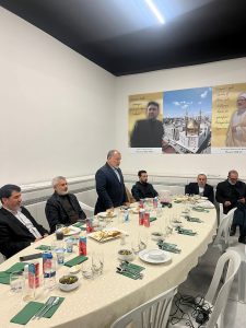 Bu ziyaret vesileyle bir araya gelen Câbir uleması el Hekim onuruna yemek verdi. Türkiye Caferileri Lideri Selahattin Özgündüz’ün de Câbir’in daveti üzerine bulunduÄŸu ziyaret toplantısı, Zeyneb-i Kübra Camii imamı Ahmet AlçiçeÄŸin Kuran’ı Kerim tilavetiyle baÅŸladı. Kuran’ı Kerim tilavetinden sonra Câbir baÅŸkanı Ali Salmanlı kısa bir konuÅŸma yaparak konuklara hoÅŸgeldiniz diyerek geçtiÄŸimiz hafta Tuzluca da Câbir ve Al-i Aba derneÄŸi tarafından gerçekleÅŸen İmam Mehdi’nin (a.f) mübarek doÄŸum günü kutlaması hakkında bilgi sundu.